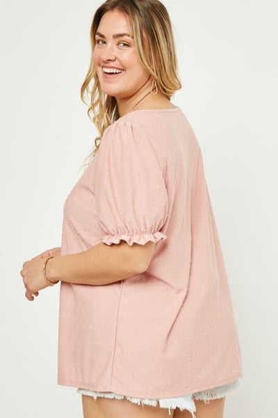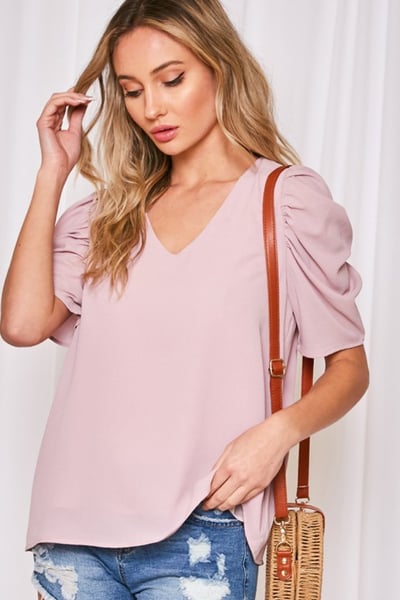 This super cute puff sleeve blouse is simply a closet essential! Your customer will get the best of two popular trends with a beautiful pink pastel color balanced with an elegant puff sleeve. This essential will pair well with just about any bottom, from your customer's favorite denim jeans or shorts to their favorite skirt.